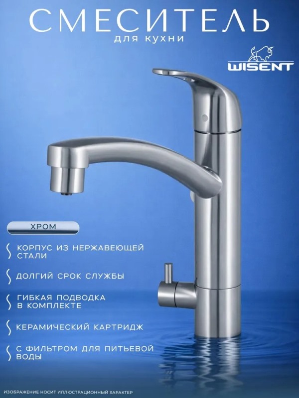 Смеситель для кухни Wisent W4298 с фильтром для питьевой воды, хром. Все характеристики |