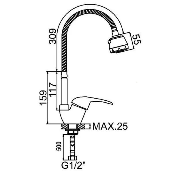 Смеситель для кухни Wisent W53215 с гибким изливом, хром. Все характеристики |