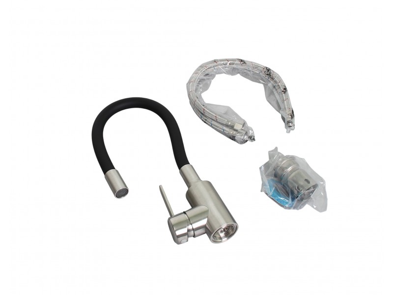 Смеситель для кухни Wisent W740333-2 с гибким изливом, сатин/черный. Все характеристики |
