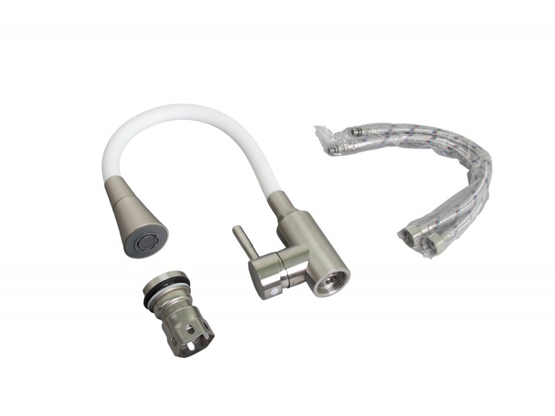Смеситель для кухни Wisent WP74199-3 с гибким изливом, сатин/белый. Все характеристики |