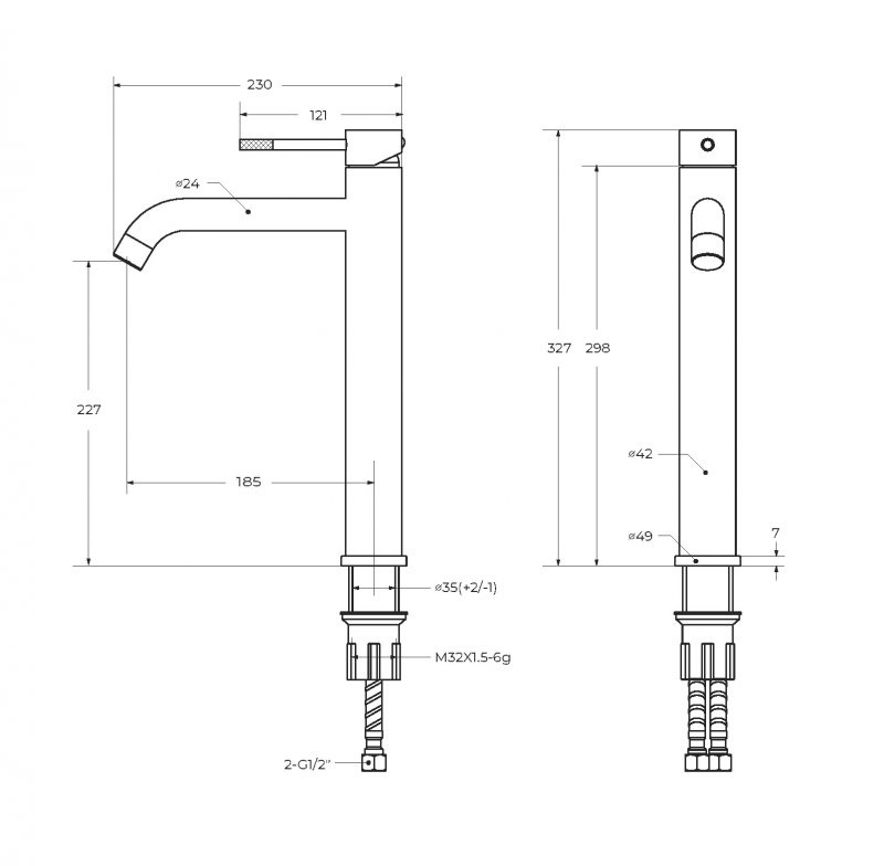 Смеситель для умывальника Cezares Relax LC2, отдельностоящий, оружейная сталь