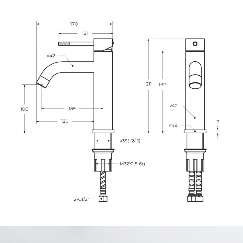 Смеситель для умывальника Cezares Relax LC2, отдельностоящий, оружейная сталь