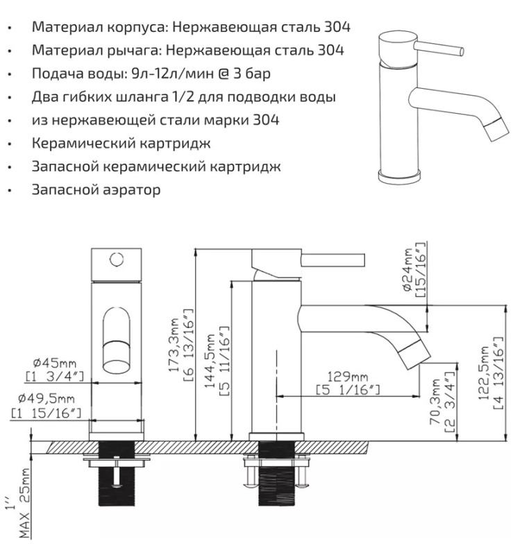 Смеситель для раковины Gid Inga SS096BMK из высококачественной нержавеющей стали.Свойства. Материал-нержавеющая сталь SUS 304. Поверхность матовая, цвет-черный. Устойчивость к коррозии, легкость в уходе. Надежный керамический картридж обеспечивает плавный ход ручки и бесшумную работу изделия. Аэратор экономит воду и насыщает струю кислородом. Смеситель Inga SS096BMK для накладной раковины. Производство. Компания Gid крупный производитель сантехники. Современное оборудование. Собственный конструкторский отдел. Качество. Лучшее отборное сырье и материалы из надежных источников. Тщательный контроль на каждом этапе. Изображение и цвет на мониторе могут отличаться от оригинала. Комплектность: