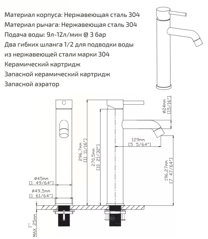 Отдельностоящий смеситель для раковины-чаши Gid Inga SS096CHD из высококачественной нержавеющей стали.Свойства. Материал-нержавеющая сталь SUS 304. Гладкая и блестящая поверхность. Устойчивость к коррозии, легкость в уходе. Надежный керамический картридж обеспечивает плавный ход ручки и бесшумную работу изделия. Аэратор экономит воду и насыщает струю кислородом. Свободностоящий смеситель Inga SS096CHD для накладной раковины. Производство. Компания Gid крупный производитель сантехники. Современное оборудование. Собственный конструкторский отдел. Качество. Лучшее отборное сырье и материалы из надежных источников. Тщательный контроль на каждом этапе. Изображение и цвет на мониторе могут отличаться от оригинала. Комплектность: