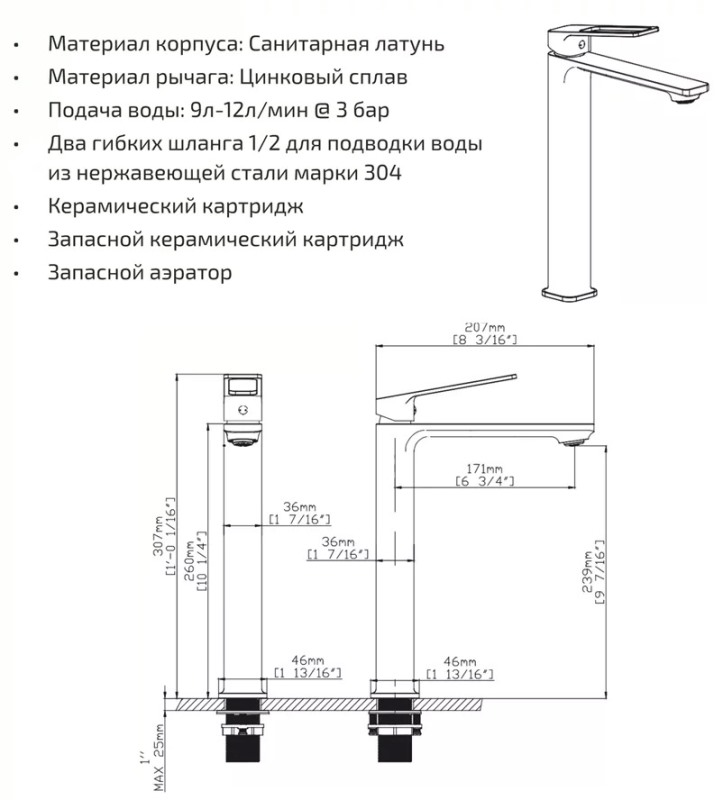 В комплекте: гибкая подводка, запасной картридж, аэратор.Дополнительно комплектуется: донный клапан. |