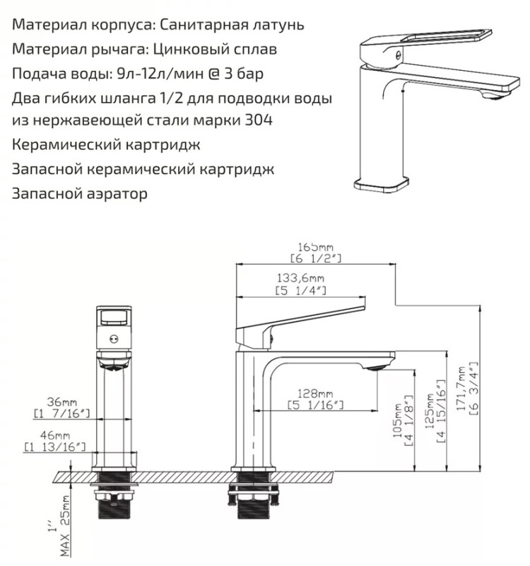 В комплекте: гибкая подводка, запасной картридж, аэратор.Дополнительно комплектуется: донный клапан. |