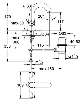 Смеситель для умывальника Grohe Avina 21093000, с донным клапаном. Все характеристики |