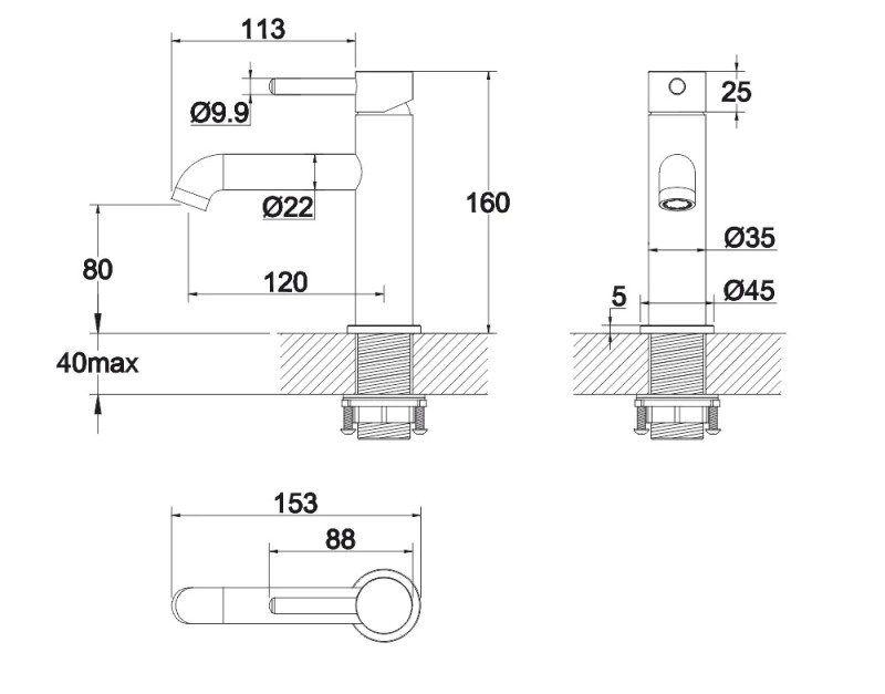 Смеситель для умывальника Whitecross Y Y1211BL, матов. черный