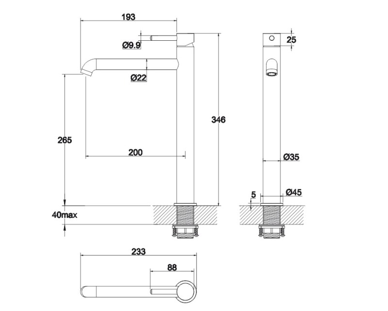 Смеситель для умывальника Whitecross Y Y1213BL, отдельностоящий, матов. черный
