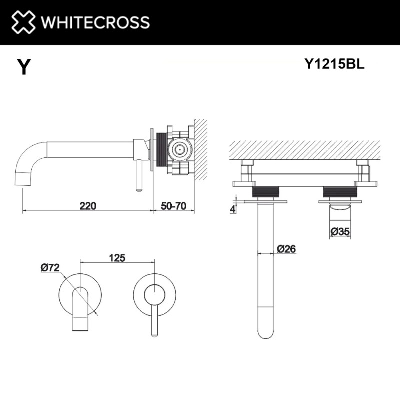 Смеситель для умывальника Whitecross Y Y1216BL, встраиваемый, матов. черный