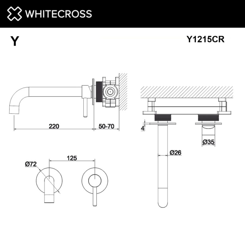 Смеситель для умывальника Whitecross Y Y1218CR, встраиваемый, хром