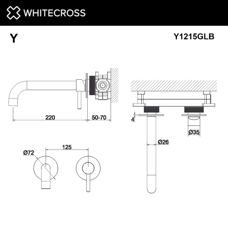 Смеситель для умывальника Whitecross Y Y1215BL, встраиваемый, матов. черный