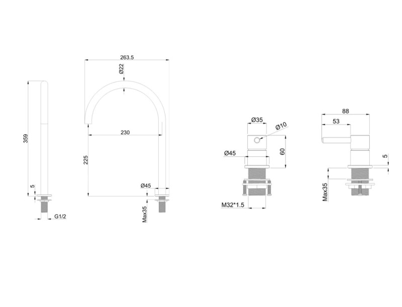 Смеситель для умывальника Whitecross Y Y1212BL, отдельностоящий, матов. черный
