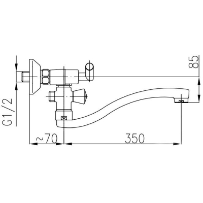 Смеситель для ванны Armatura Harmonic 348-725-00 с лейкой, настенный. Все характеристики |