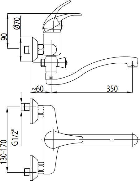 Смеситель для ванны Armatura Kroma 548-735-00 с лейкой, настенный. Все характеристики |
