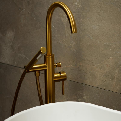 Смеситель для ванны Armatura Moza Gold 5035-510-31 отдельностоящий, с лейкой, золото. Все характеристики |