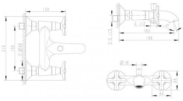 Смеситель для ванны Bravat Summer Rain F677111C-01, настенный. Все характеристики |