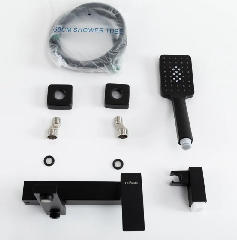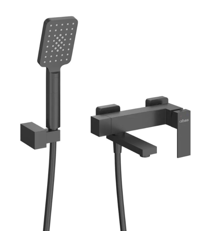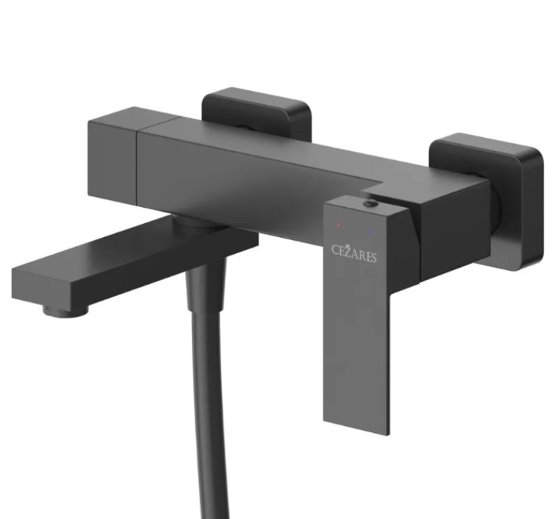 Смеситель для ванны Cezares Slider VD с лейкой, настенный, черный матовый. Все характеристики |