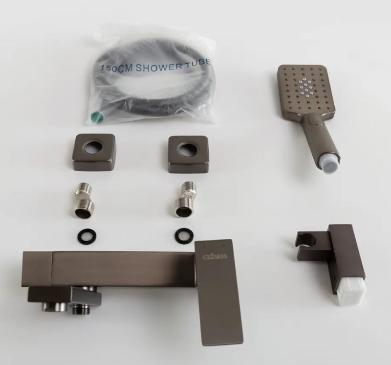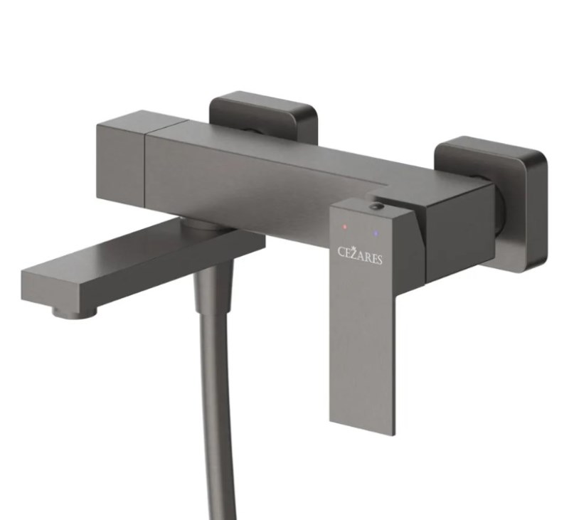 Смеситель для ванны Cezares Slider VD с лейкой, настенный, оружейная сталь. Все характеристики |
