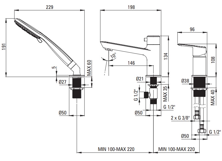 Смеситель для ванны Deante Arnika BQA 013M врезной, на 3 отверстия, с лейкой, хром. Все характеристики |
