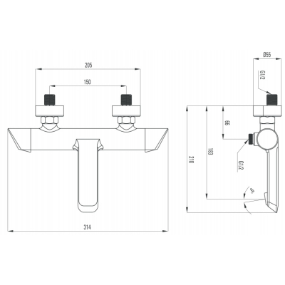 Смеситель для ванны Deante Arnika BQA N11M настенный, с лейкой, черный. Все характеристики |