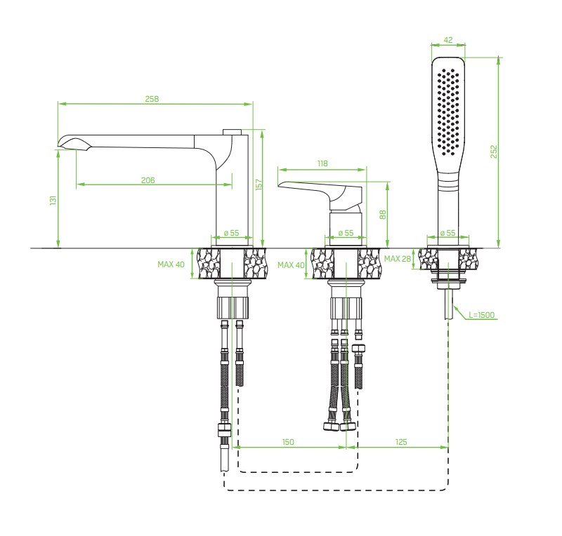 Смеситель для ванны Laveo Alea BLE_613D на борт, с лейкой, 3 отверстия. Все характеристики |