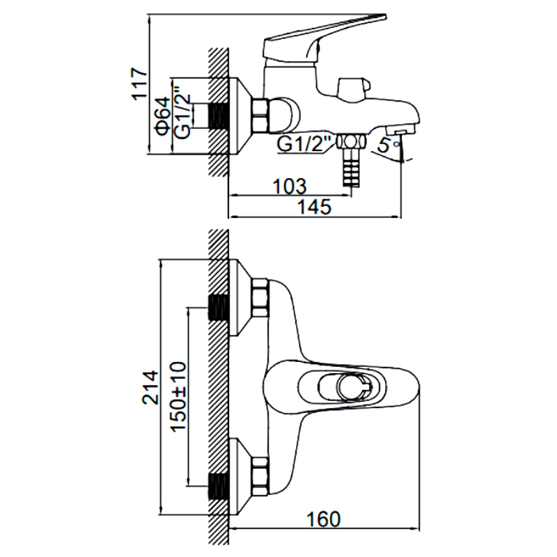 Смеситель для ванны Ledeme H13 L3013 с лейкой, настенный. Все характеристики |