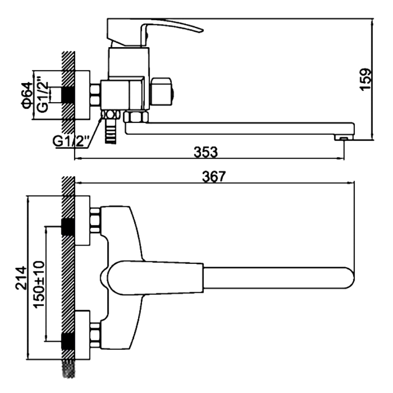 Смеситель для ванны Ledeme H43 L2243 с лейкой, настенный. Все характеристики |