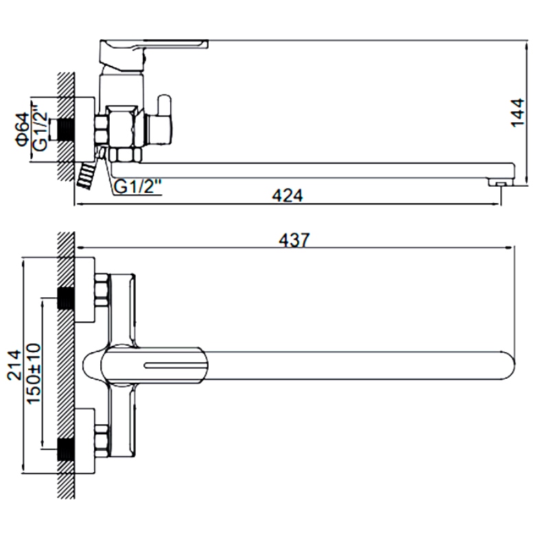 Смеситель для ванны Ledeme H66 L2266 с лейкой, настенный. Все характеристики |