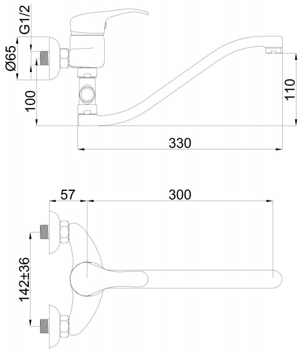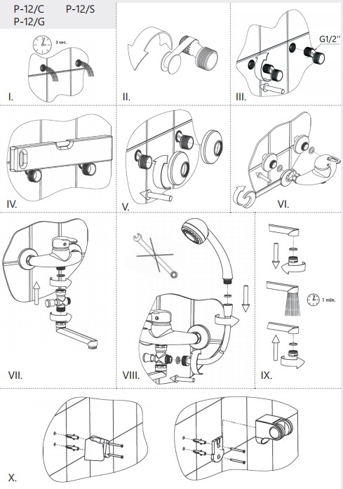 Смеситель для ванны Rubineta Prince P-12/G STAR (20) P27K01 с лейкой, настенный. Все характеристики |