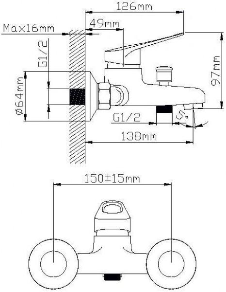 Смеситель для ванны Wisent W213 WP30213 настенный, с лейкой, хром. Все характеристики |