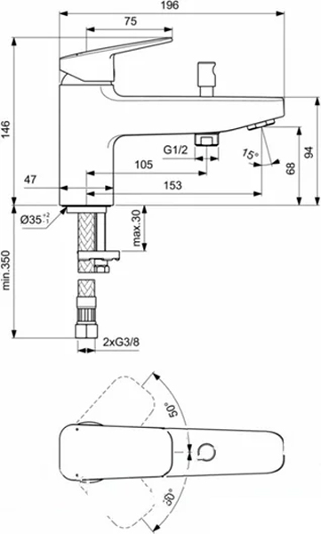 Смеситель на борт ванны Ideal Standard Ceraplan BD257AA врезной, на 1 отверстие, хром. Все характеристики |
