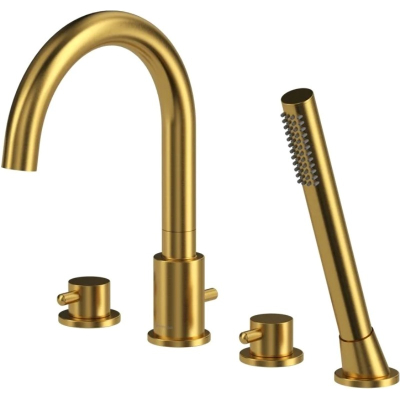 Смеситель на борт ванны Whitecross Y Y1232GLB, врезной, на 4 отверстия, с лейкой, брашированное золото. Все характеристики