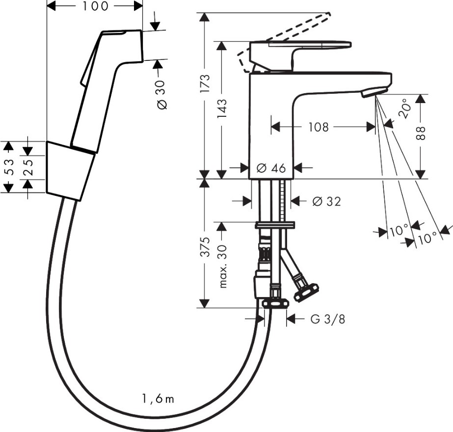 Смеситель для умывальника Hansgrohe Vernis Blend 100 71215000 с гигиеническим душем, хром. Все характеристики |