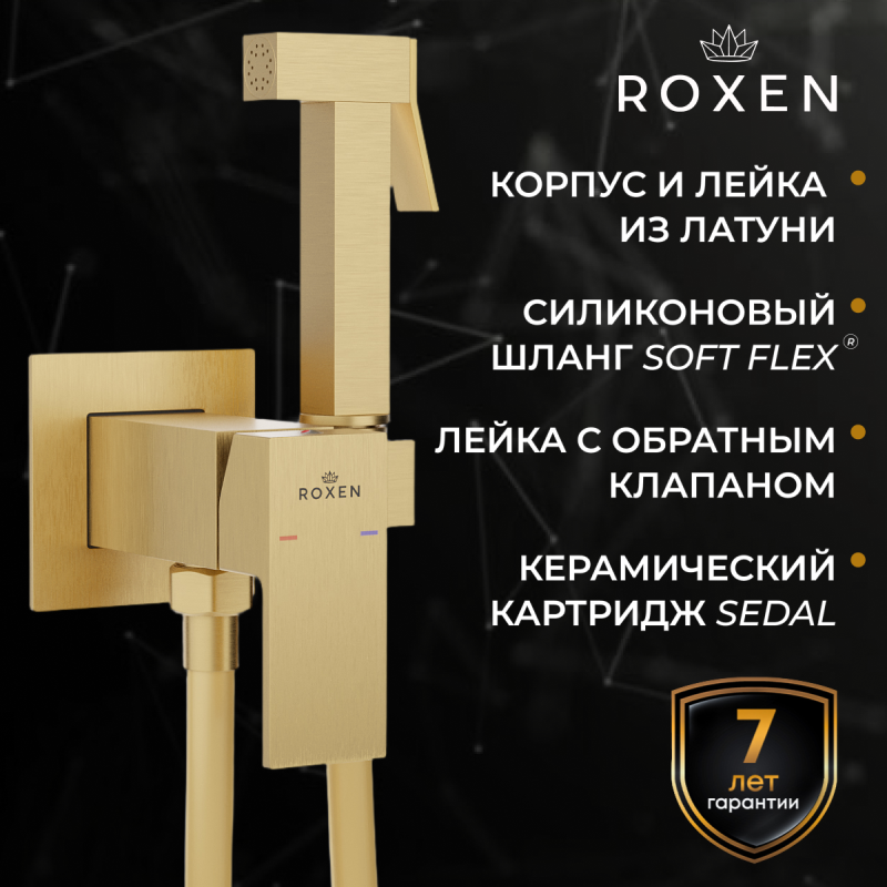 Смеситель с гигиеническим душем Roxen Casia встраиваемый, брашированное золото. Все характеристики |