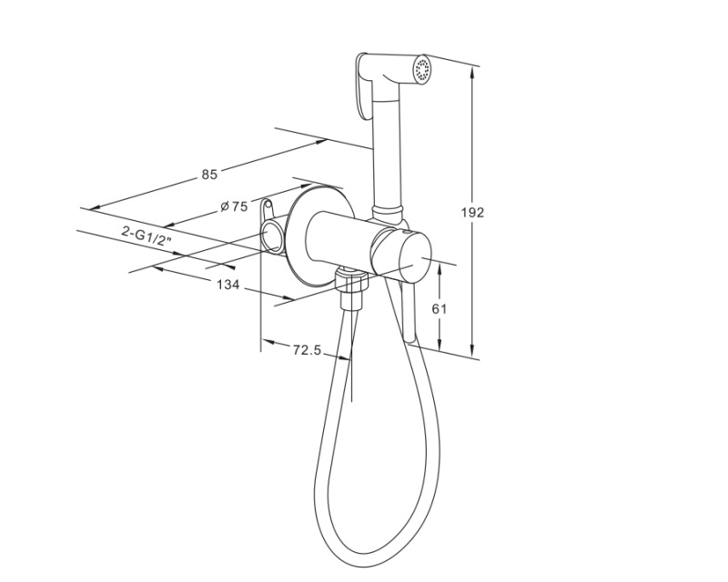 В комплекте: гигиеническая лейка, душевой шланг 130 см, монтажный короб. |