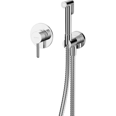 Хромированное покрытие. Керамический картридж Kerox. Душевой шланг в металлической оплетке. Длина шланга 125 см. Расход воды-5 л\м при давлении 3 Бар. Встраиваемый гигиенический смеситель-псевдобиде с лейкой для унитаза Y SYSYBI1CR на стену.