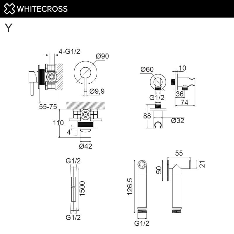 Смеситель с гигиеническим душем Whitecross Y SYSYBI1GL, встраиваемый, золото. Все характеристики