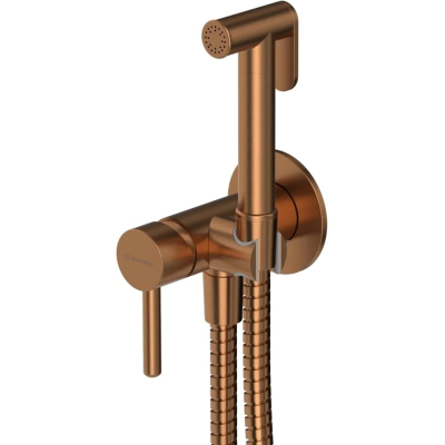 Покрытие-PVD, цвет-брашированная медь. Керамический картридж Kerox, диаметр-25 мм. Душевой шланг в металлической оплетке. Длина шланга 125 см. Расход воды-5 л\м при давлении 3 Бар. Встраиваемый гигиенический смеситель-псевдобиде с лейкой для унитаза Y SYSYBI2CPB на стену.