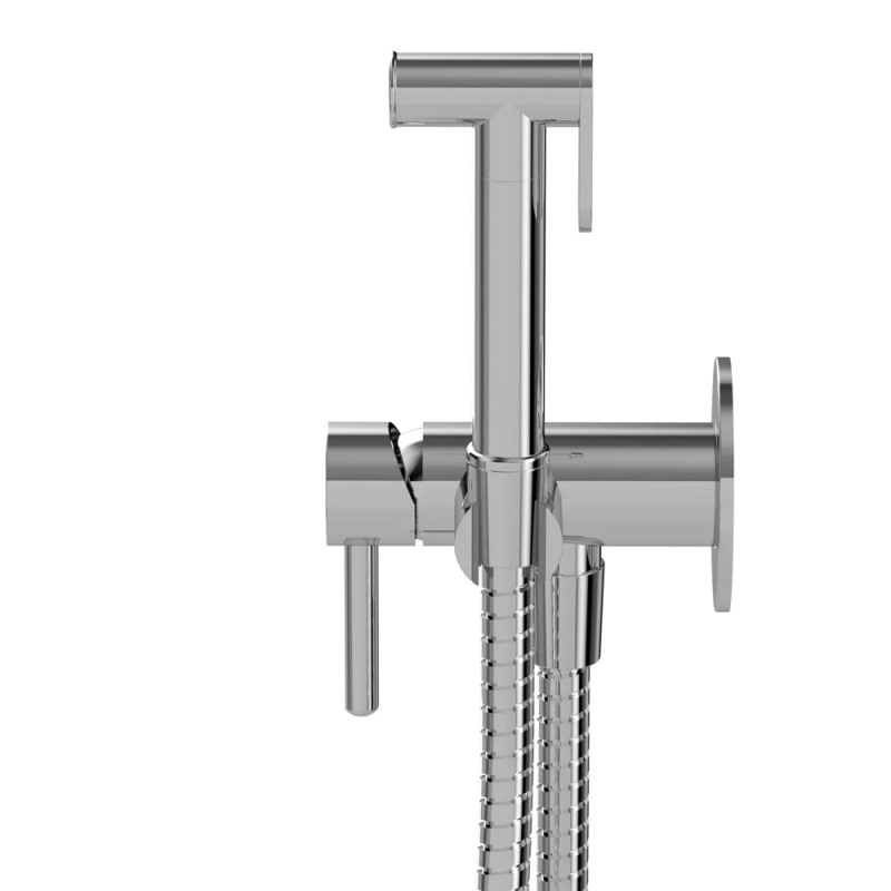 Хромированное покрытие. Керамический картридж Kerox, диаметр-25 мм. Душевой шланг в металлической оплетке. Длина шланга 125 см. Расход воды-5 л\м при давлении 3 Бар. Встраиваемый гигиенический смеситель-псевдобиде с лейкой для унитаза Y SYSYBI2CR на стену.