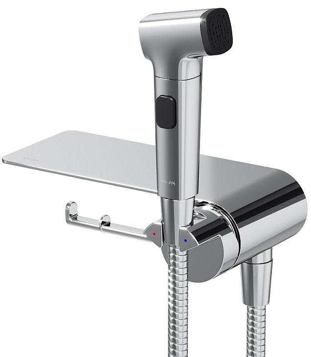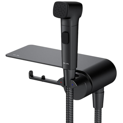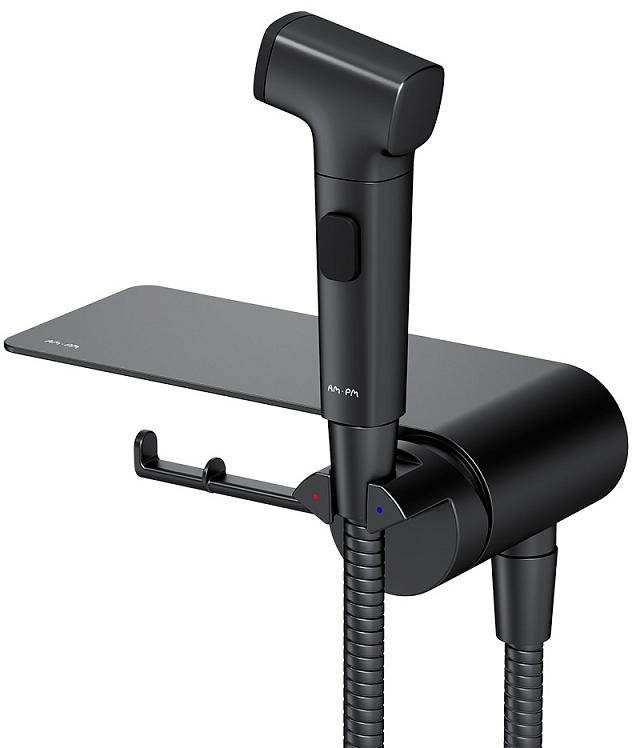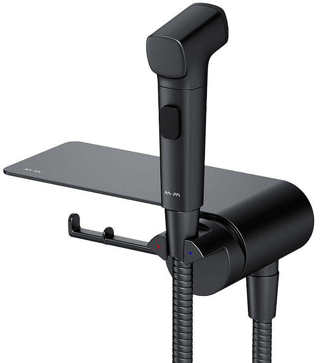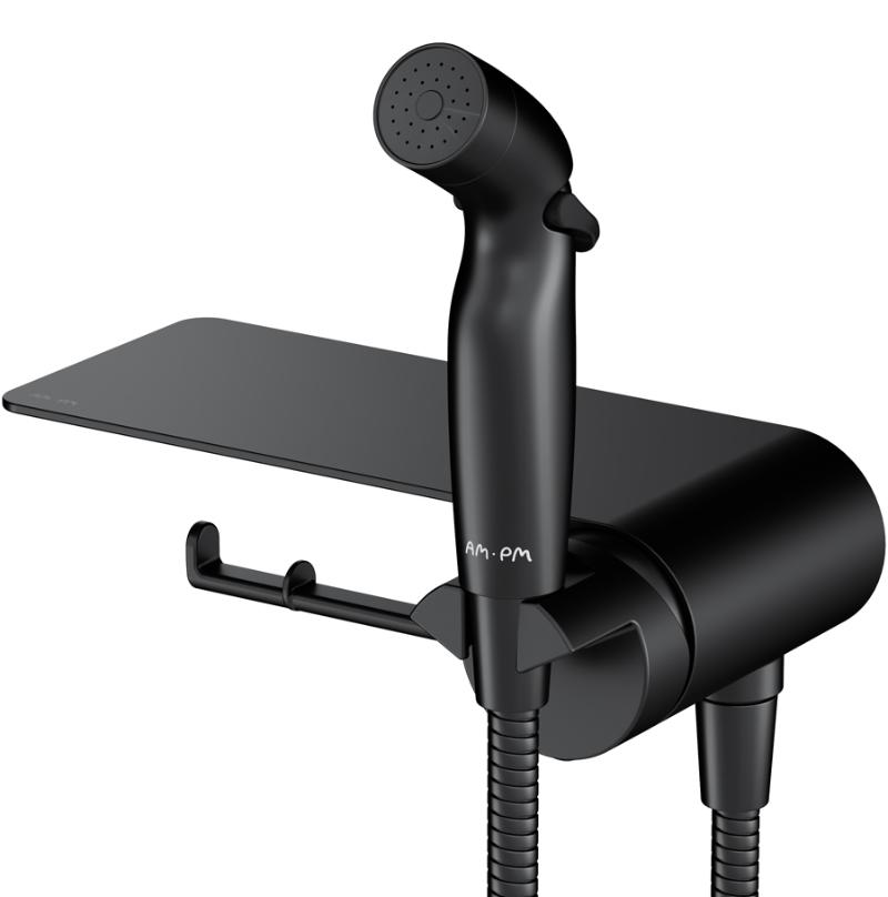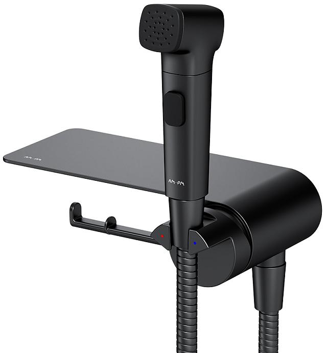 Смеситель с гигиеническим душем AM.PM Func F0H8F922 настенный, с полкой и крючком, черный мат.. Все характеристики |