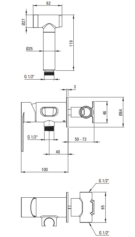 В комплекте: смеситель для душа латунь с держателем, гигиенический душ 1 режим дождик старт-стоп, душевой шланг 120 см anti_twist. |