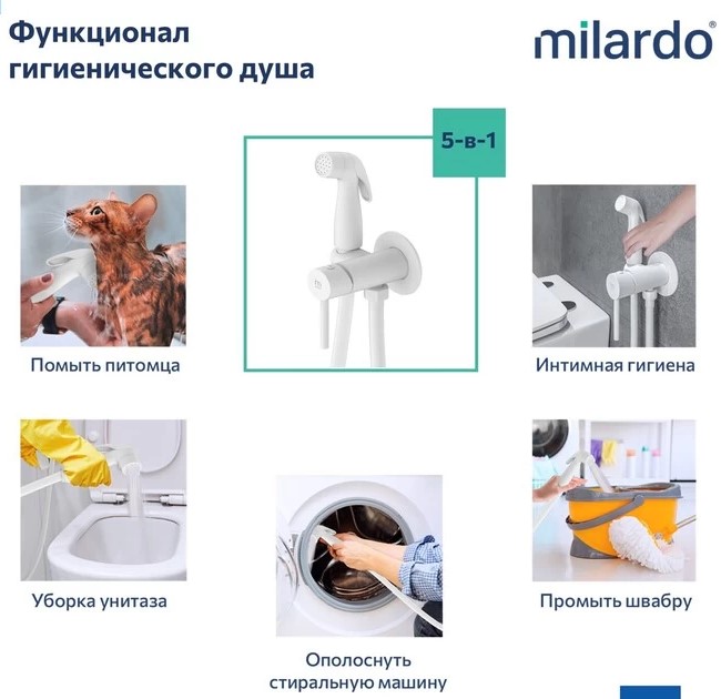 Смеситель с гигиеническим душем Milardo Tidy 001WTR0M08 встраиваемый, белый матовый. Все характеристики |