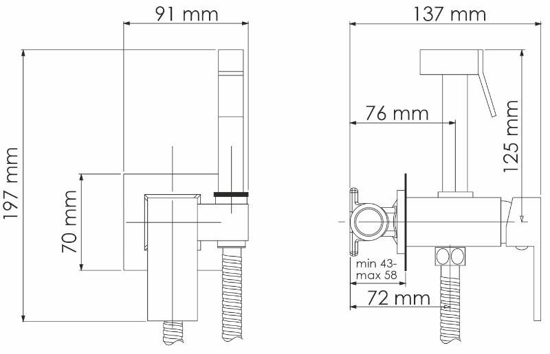 В комплекте: смеситель для душа латунь с держателем для лейки, гигиеническая лейка латунь, душевой шланг 120 см. |