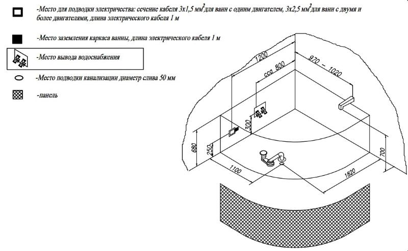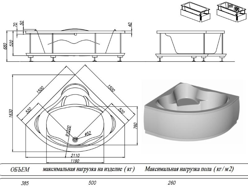 Дополнительно комплектуется: каркас, панель, смеситель, сифон. |