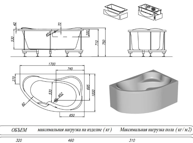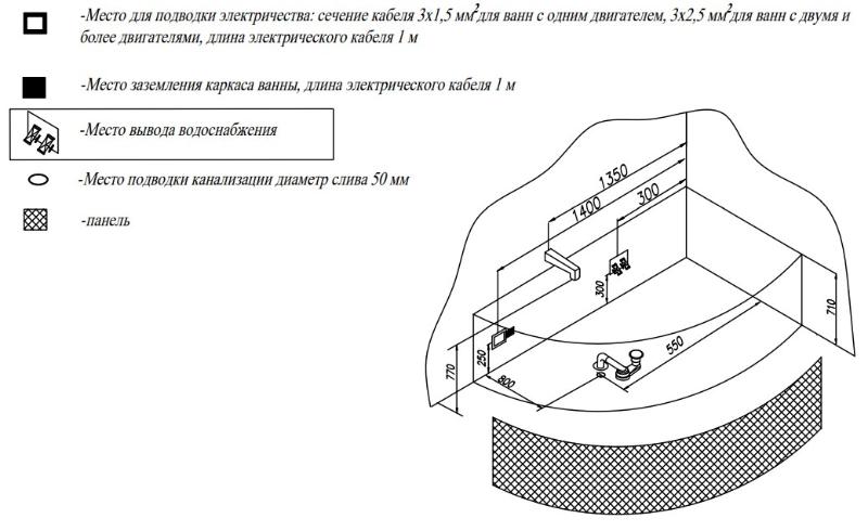 Дополнительно комплектуется: каркас, панель, смеситель, сифон. |