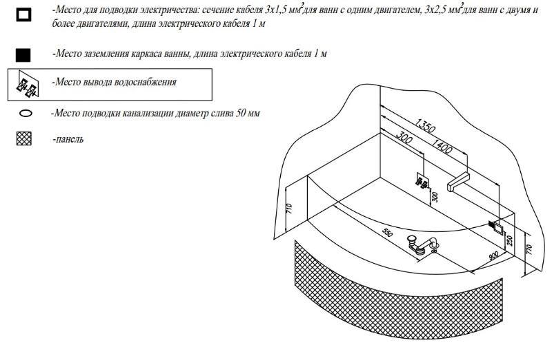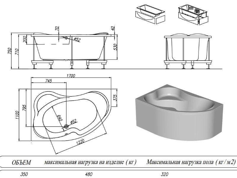 Дополнительно комплектуется: каркас, панель, смеситель, сифон. |