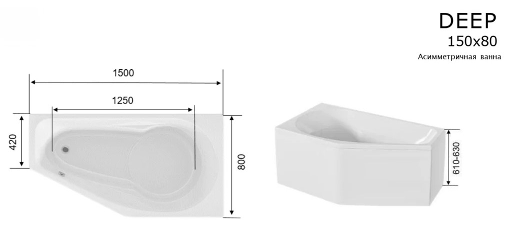 Акриловая ванна 1Marka Deep 150x80, угловая правая. Все характеристики |