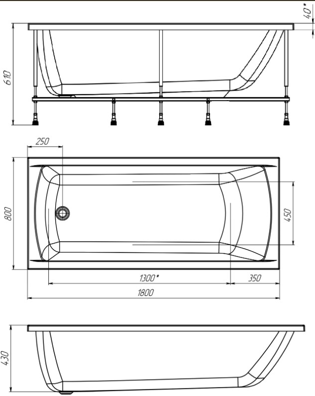 Дополнительно комплектуется: ножки или каркас, панель, сифон, смеситель. |