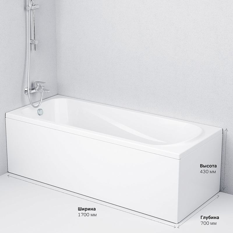 Дополнительно комплектуется: каркас, панель, смеситель, сифон. |